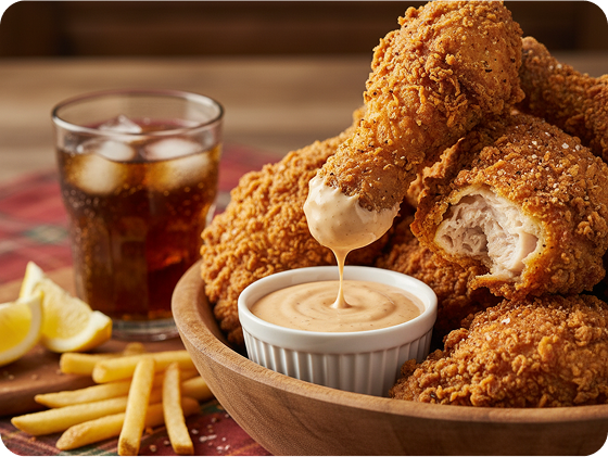The vibrant fizz instantly refreshes your palate, making every bite of the fried chicken even more enjoyable.